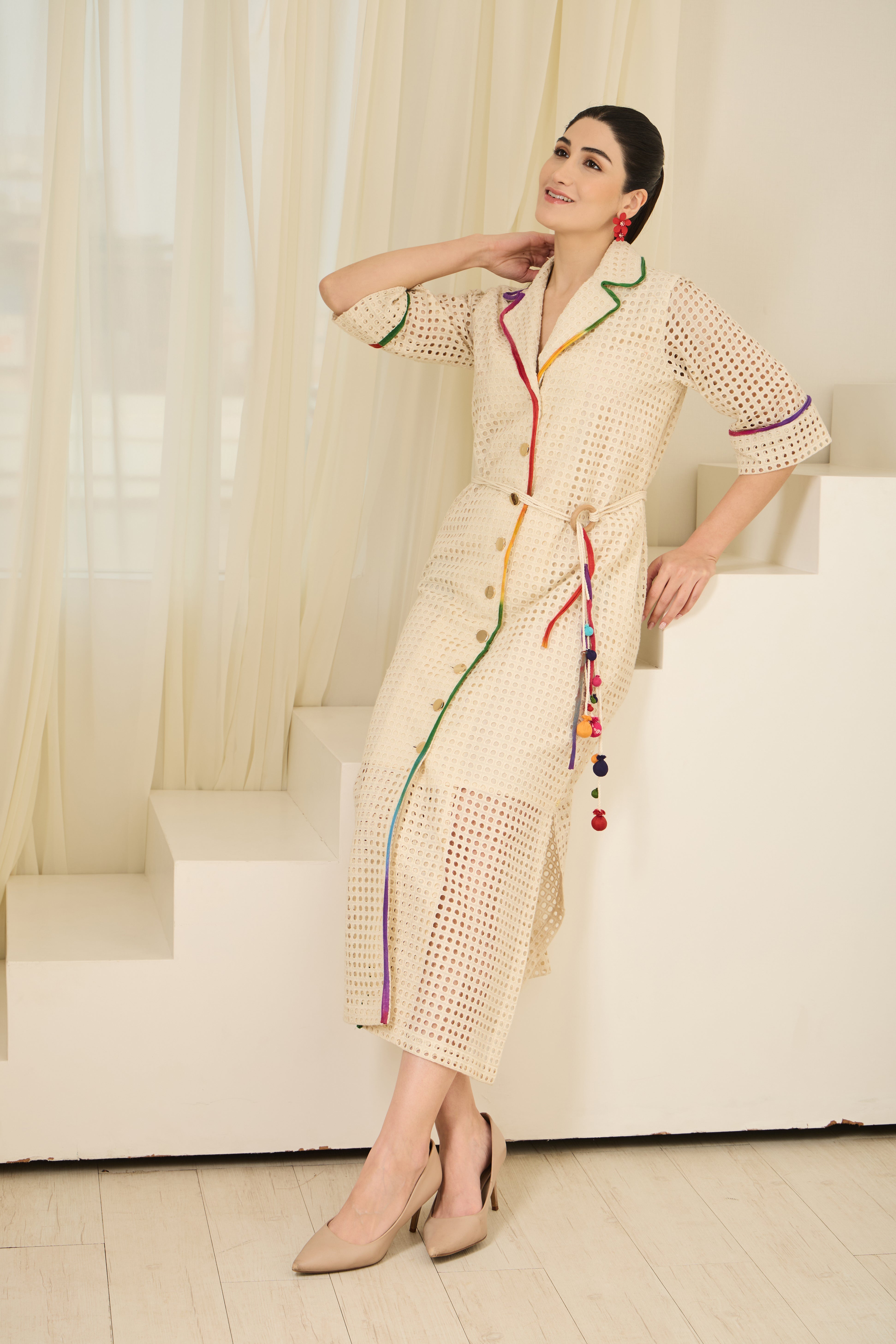 - Multi-coloured piping detail all over the hems